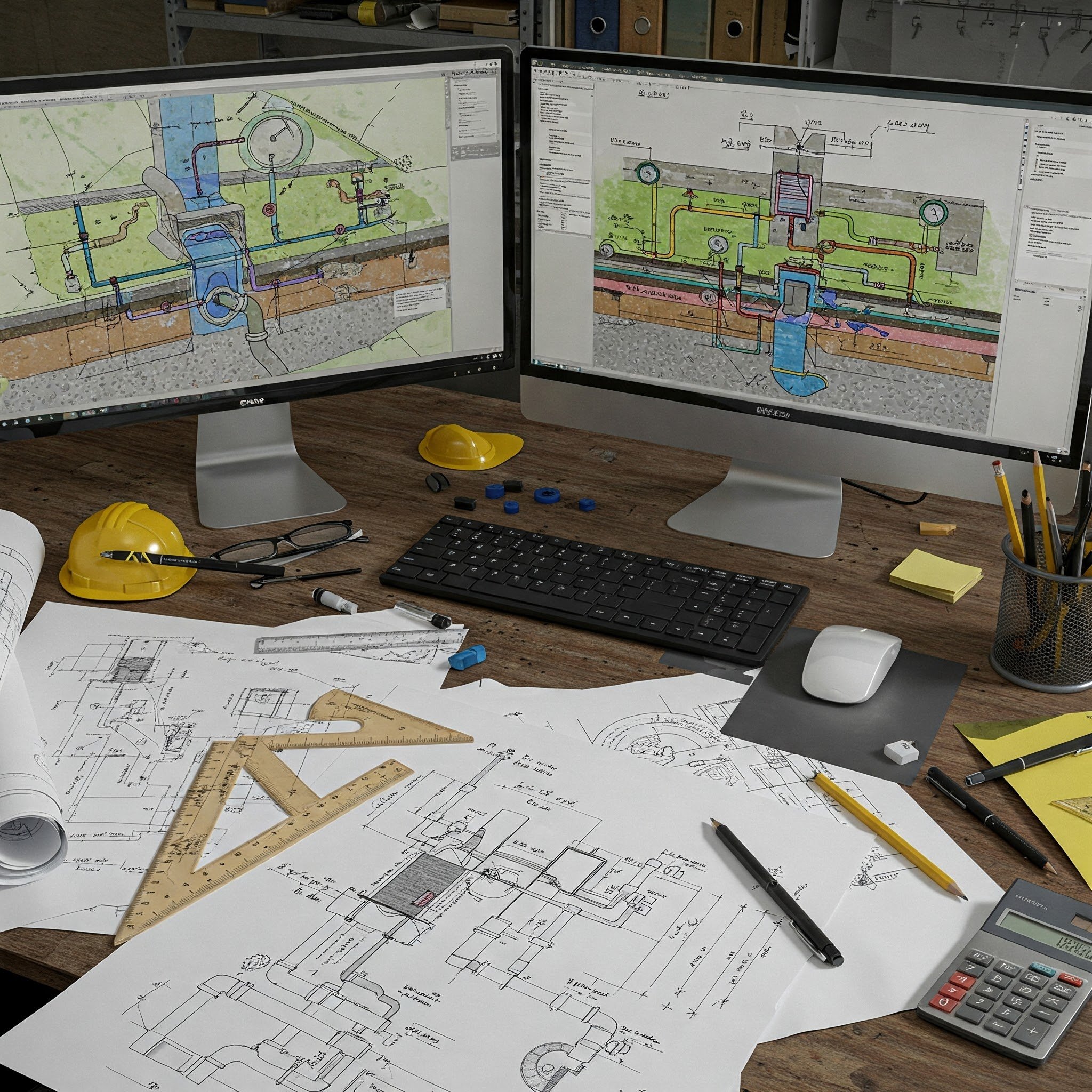 2D Drafting and 3D modeling of wastewater collection and transportation systems.